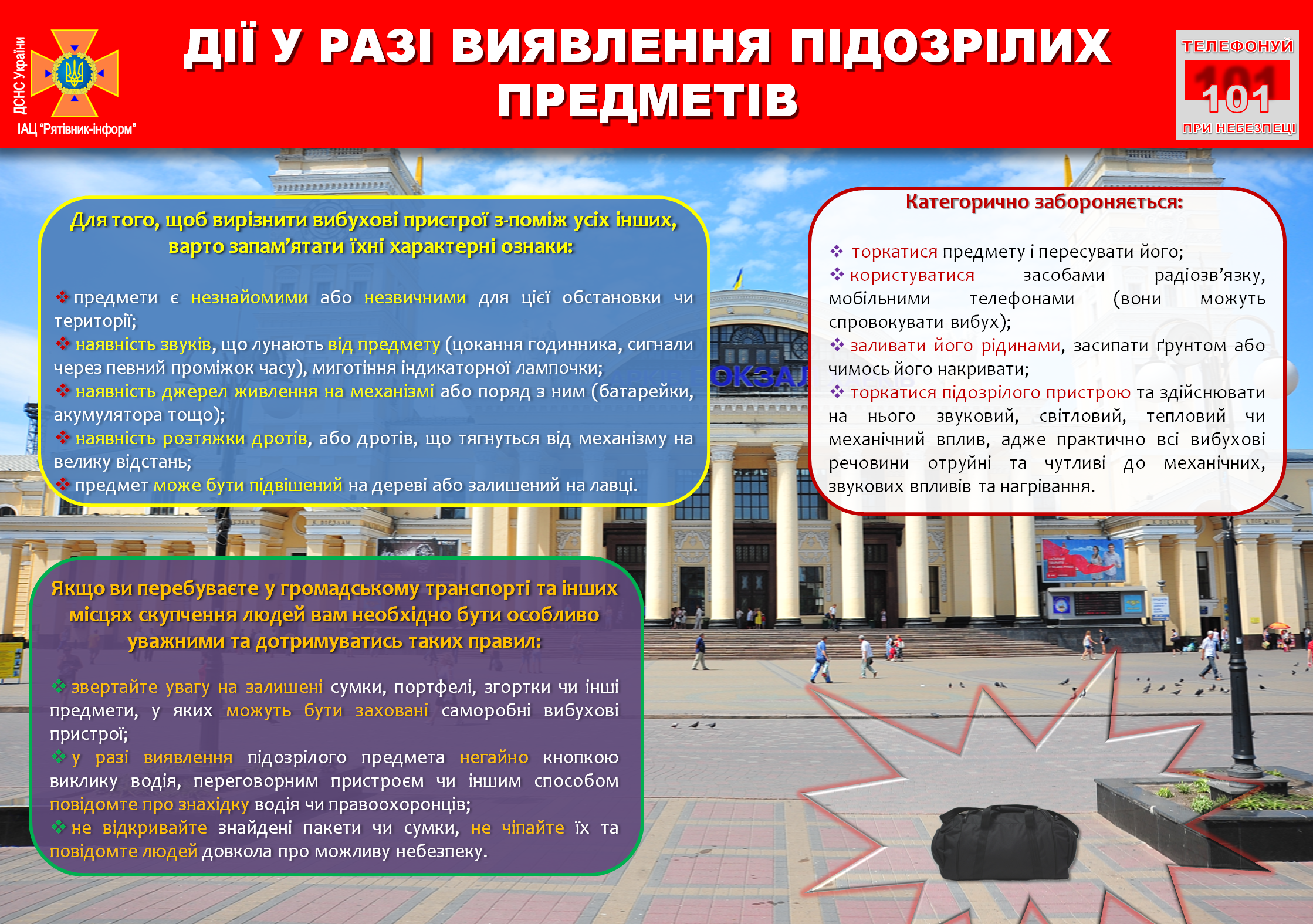 Порядок дій та правил поведінки у разі виявлення вибухонебезпечних та інших підозрілих предметів